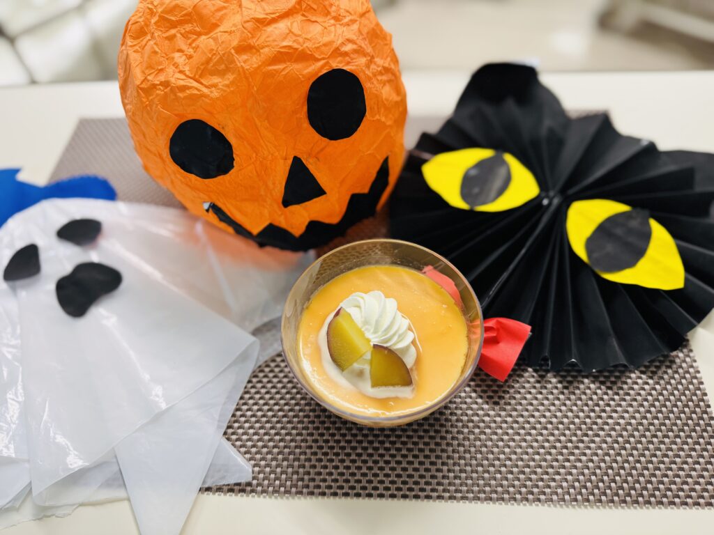 今月のイベントは「作品製作」でハロウィンの飾りを作りました。
